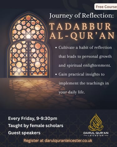 At Dārul Qur'ān Leicester, our commitment lies in providing sisters with tailored opportunities to enhance Qur'ānic knowledge and Tajwīd mastery.