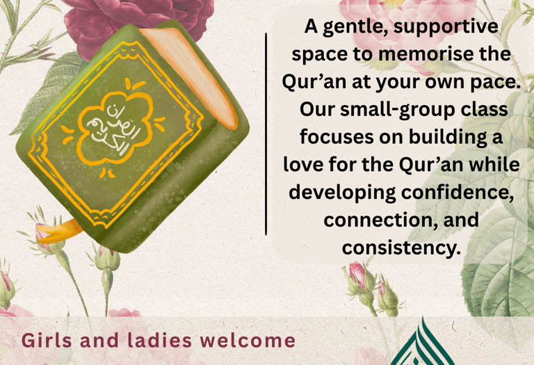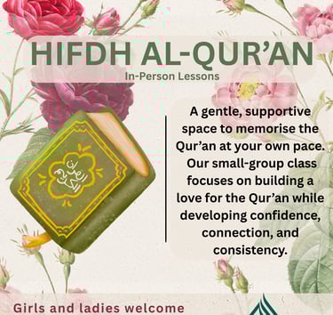 Join our nurturing weekday Hifdh class designed for sisters and home-educated girls, focused on memorising the Qur’an with love, discipline, and spiritual connection.