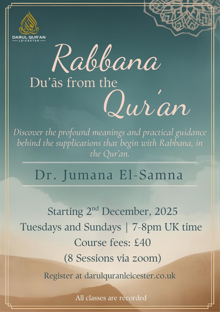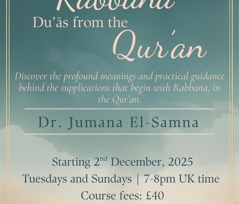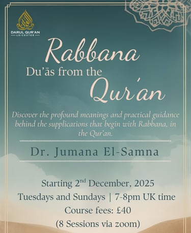 Discover the profound meanings and practical guidance behind the supplications that begin with Rabbana in the Qur'an. This course takes you on an insightful journey through the Qur'an, focusing on the beautiful and powerful supplications that begin with Rabbana (“Our Lord”).