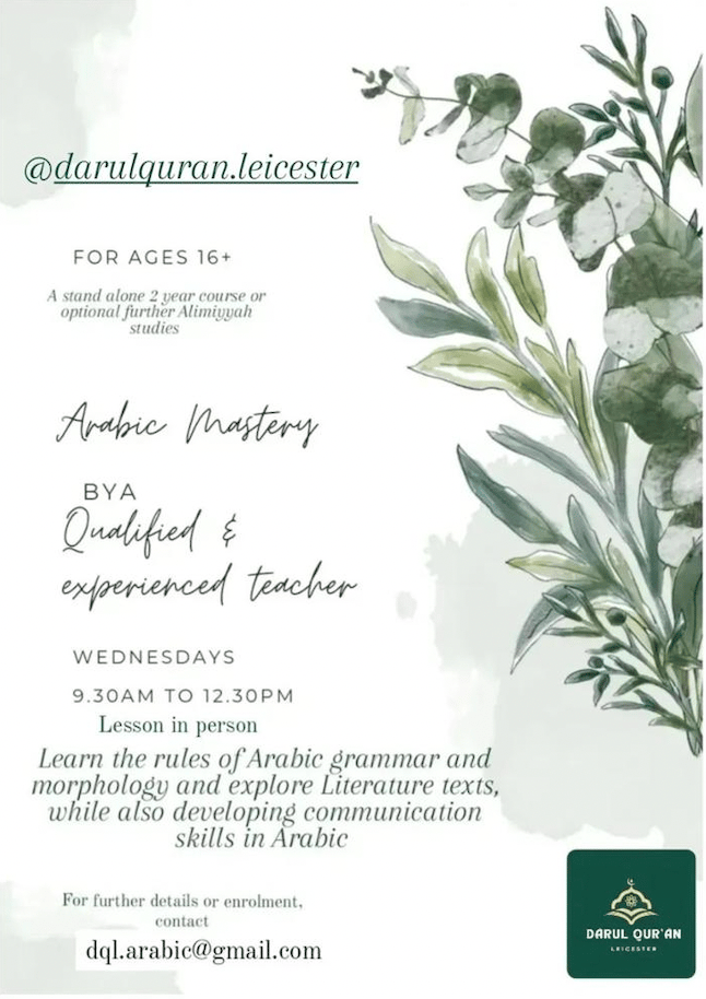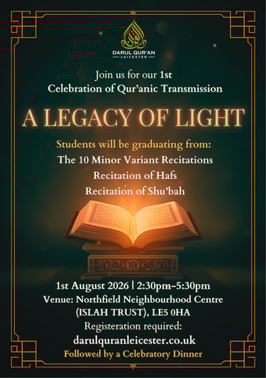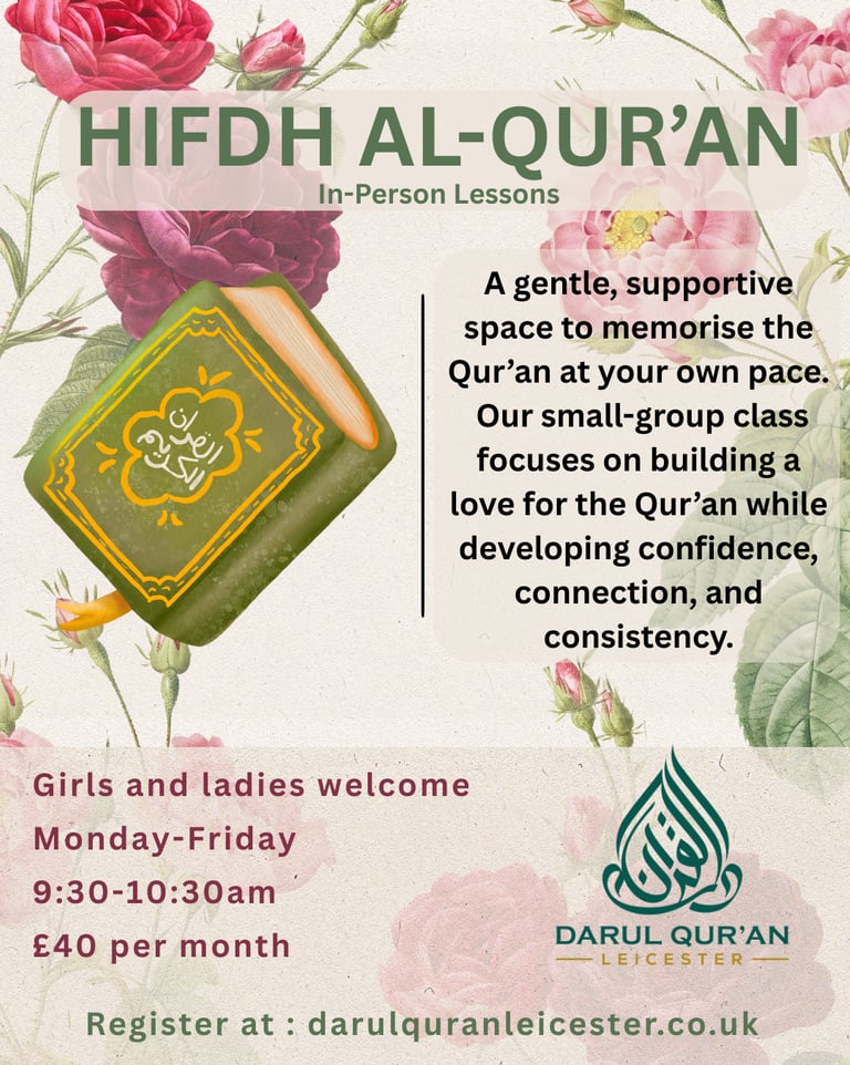 Welcome to Dārul Qur'ān Leicester - a space to grow, reflect and connect.
